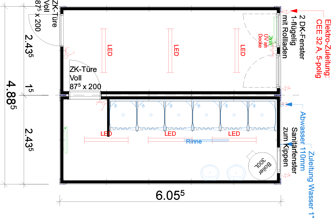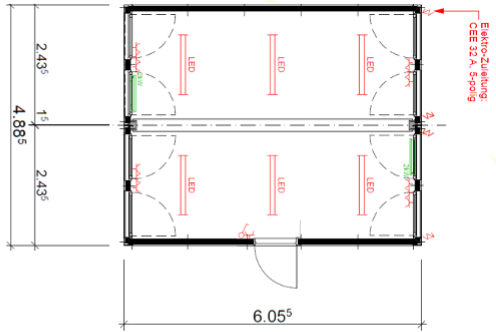 | Aussenmasse (L x B x H) | 6.05 m x 4.88 m x 2.80 m |