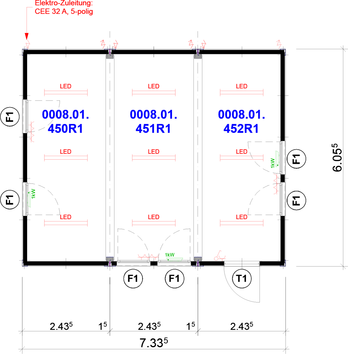 | Aussenmasse (L x B x H) | 7.33 m x 6.05 m x 2.80 m |