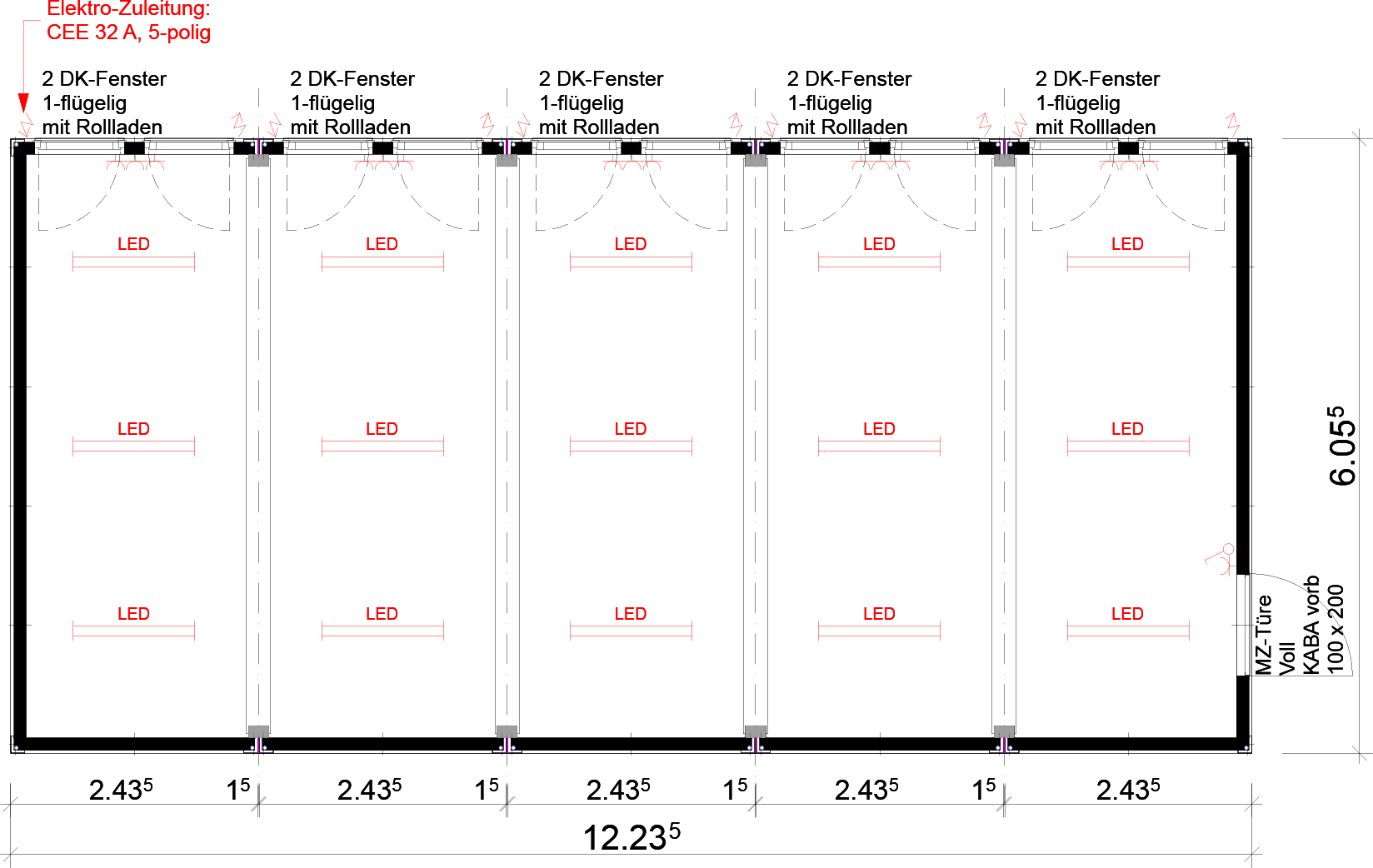 | Aussenmasse (L x B x H) | 12.23 m x 6.05 m x 2.80 m |