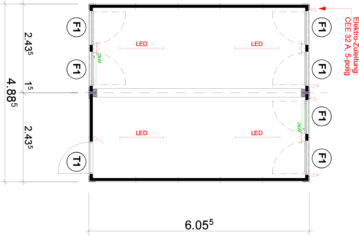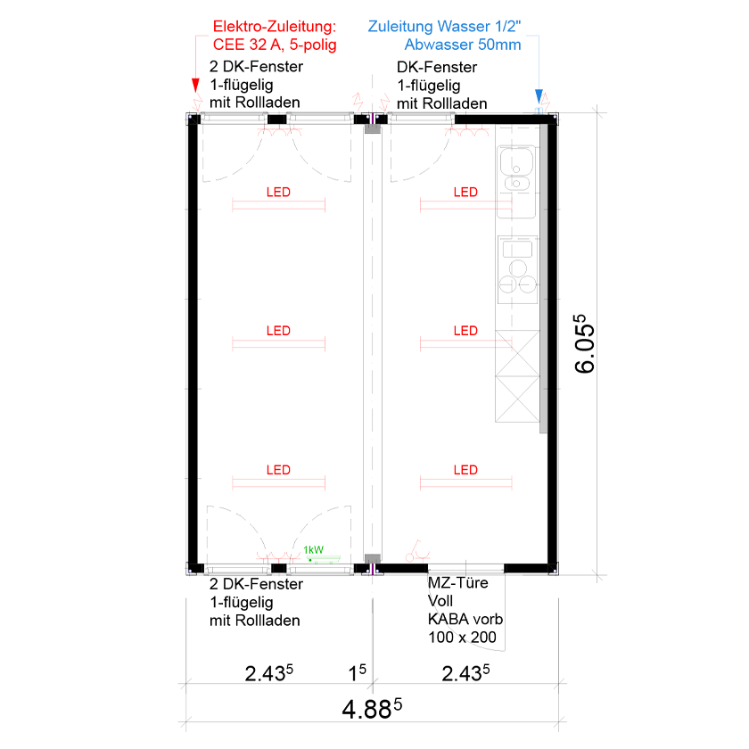 | Aussenmasse (L x B) | 6.05 x 4.88 m |
