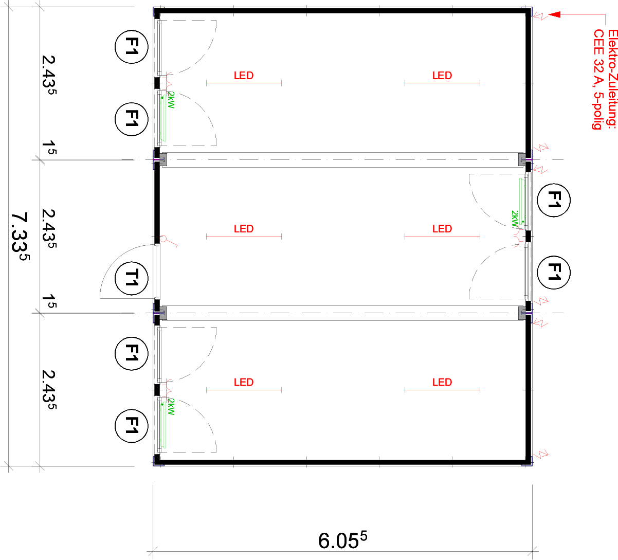 | Aussenmasse (L x B) | 6.05 x 7.32 m |