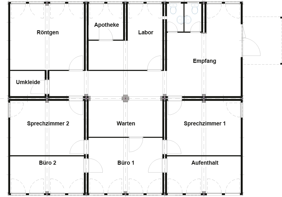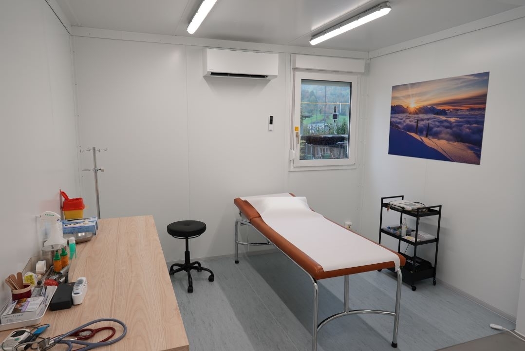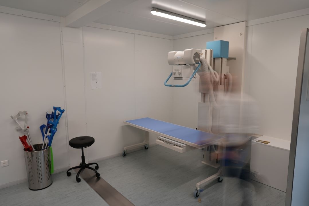- Abgeschirmter Röntgenraum: für radiologische Untersuchungen, bauseits eingebaut