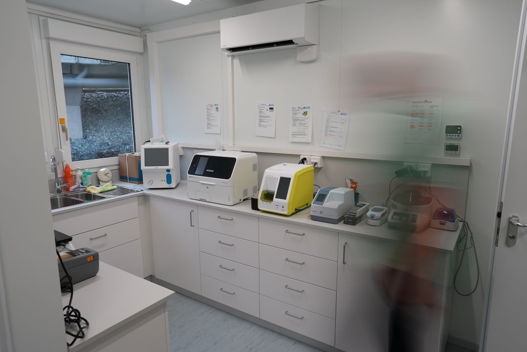 - Durchreiche zum Labor: Direkte Übergabe von Proben über eine Toilette mit Durchreiche ins Labor.