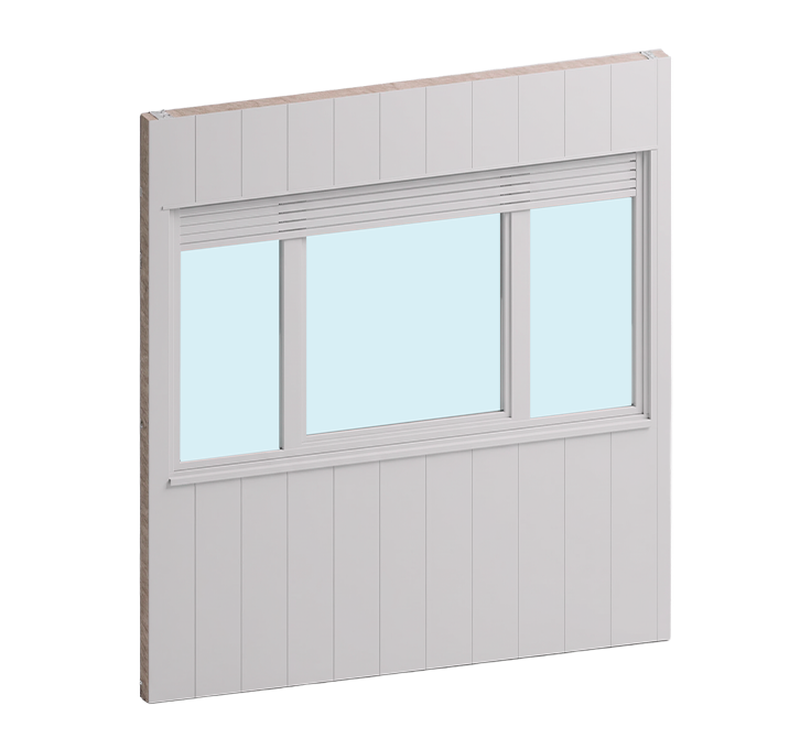 Rahmen-Paneel mit Aussenverkleidung aus verzinktem Profilstahlblech, 60 mm Mineralwolle, innen beschichtete Spanplatte