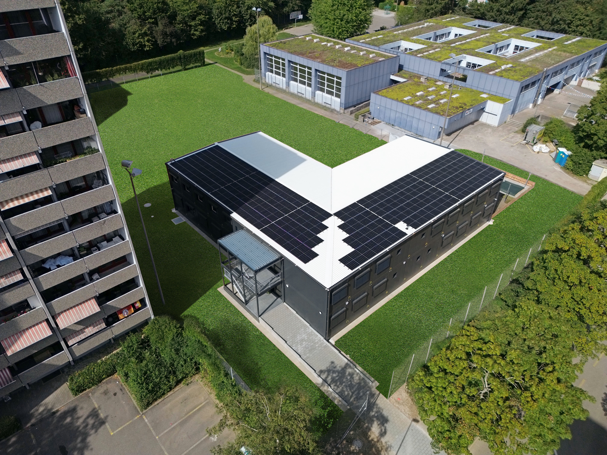 Für die Energiegewinnung können die Raumsysteme mit PV-Modulen belegt werden, wodurch das System zu einem grossen Teil autark betrieben werden kann. Pro Raummodul können bis zu 6 PV-Module angebracht werden, was einer Leistung von ca. 2.4 kWp entspricht. Überschüssige Energie kann ins Stromnetz gespeist werden und auch die Ergänzung mit einem Batteriespeicher ist möglich.