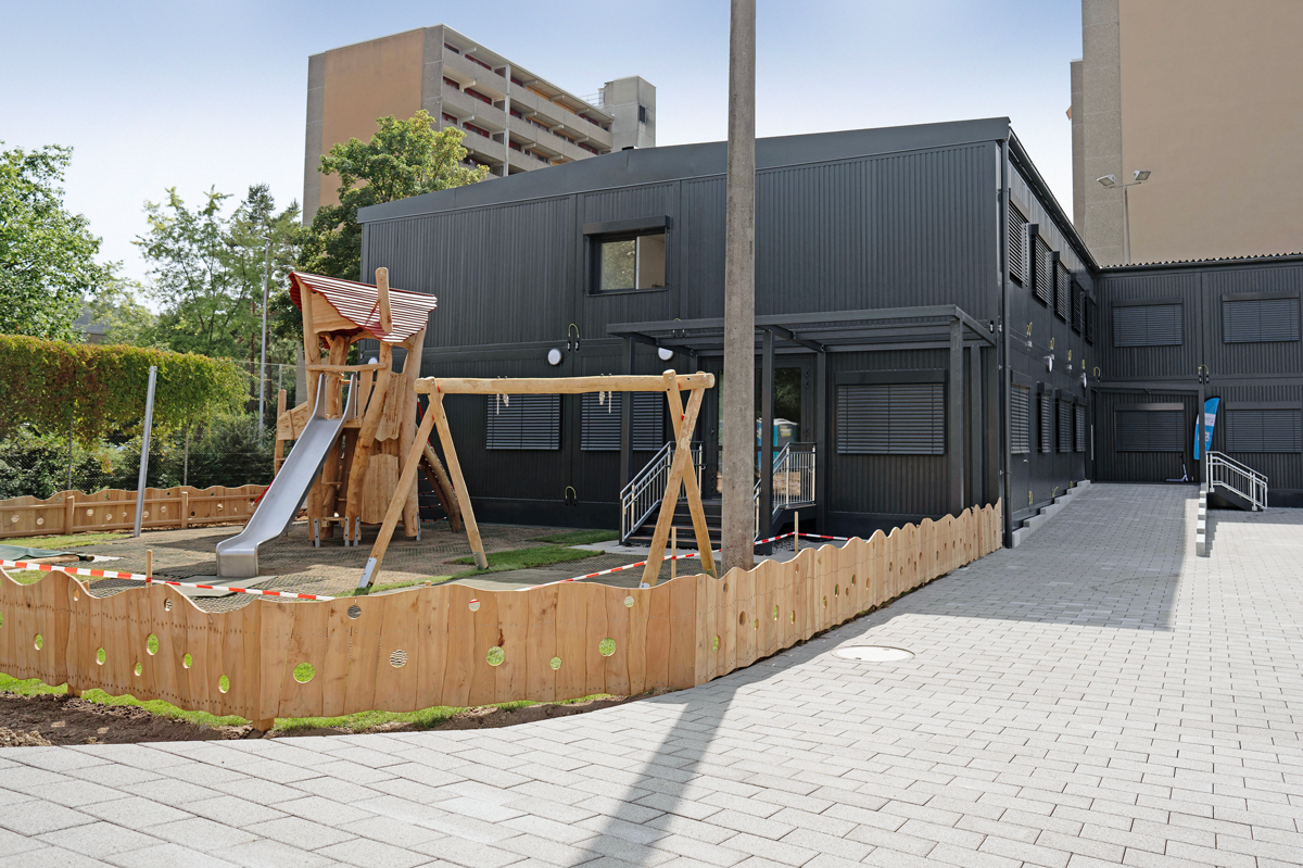 Die Dächer der modularen Raumsysteme können bepflanzt werden. Eine Dachbegrünung ist eine effiziente Massnahme zur Wärmedämmung. Die Verdunstungskälte sorgt zudem in der warmen Jahreszeit für deutlich kühlere Temperaturen in den Räumen. Zudem speichern begrünte Dächer Wasser, filtern Staub und Lärm und bieten verschiedenen Pflanzen und Tieren einen Lebensraum.
