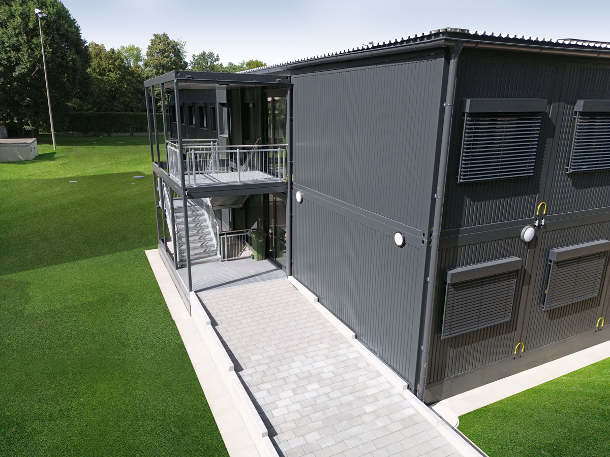 Unsere Fassadenveredelungen eröffnen zusätzliche Gestaltungsmöglichkeiten für Container- und Raumsysteme. Je nach Einsatzbereich und Wunsch können unterschiedliche Verkleidungen eingesetzt werden, die Design, Funktion und Schutz gezielt ergänzen. Die Lieferung und Montage der Fassaden ist Teil unseres 360°-Services.